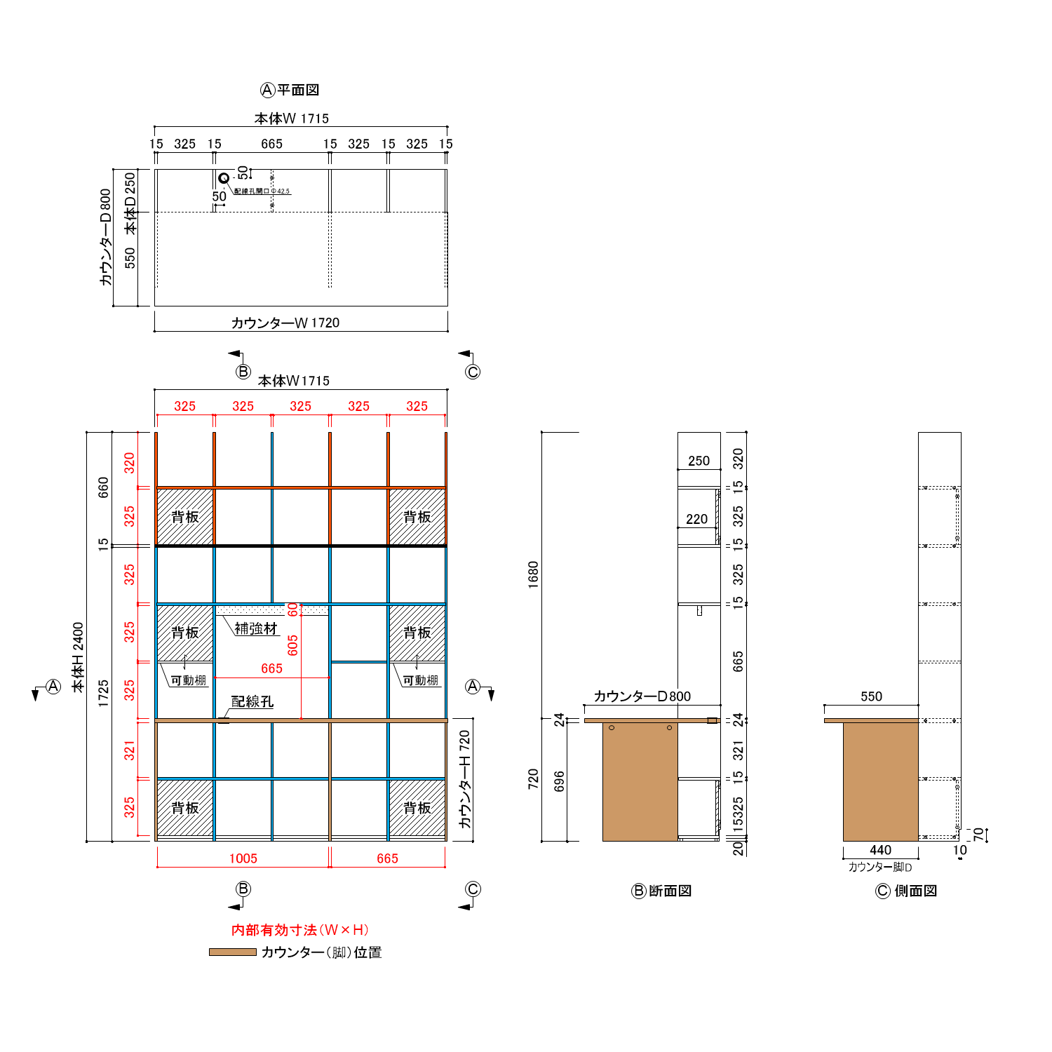 壁面収納 テレビ開口部付き