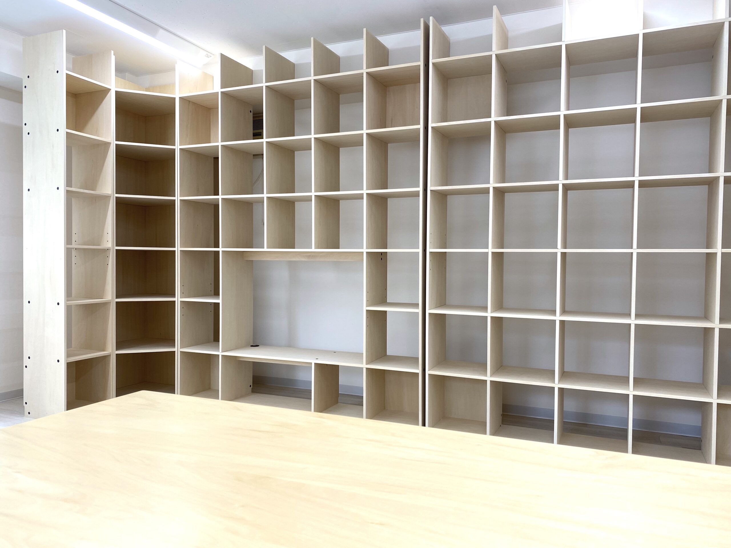 趣味のグッズやコレクションを並べた壮大なディスプレイや、書斎、蔵書をたっぷり保管できる書庫を作ることも可能です。用途に応じてデスク付きタイプを接続するなど、使い方は自由です。