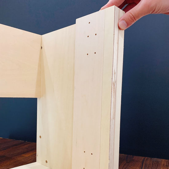 「ボンド」で接着した「③タテ枠」を、「⑥ネジ(長)」でしっかりと固定します。