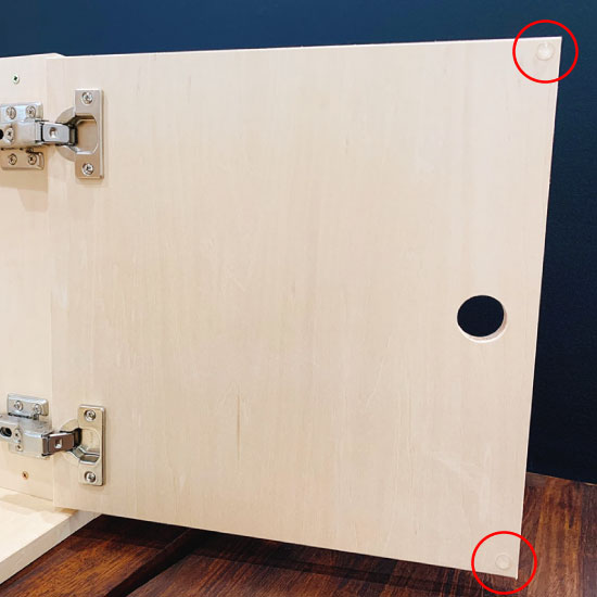 このパーツの取り付けを忘れると、中の物に扉がガツーンと当たってしまう可能性があるので注意!