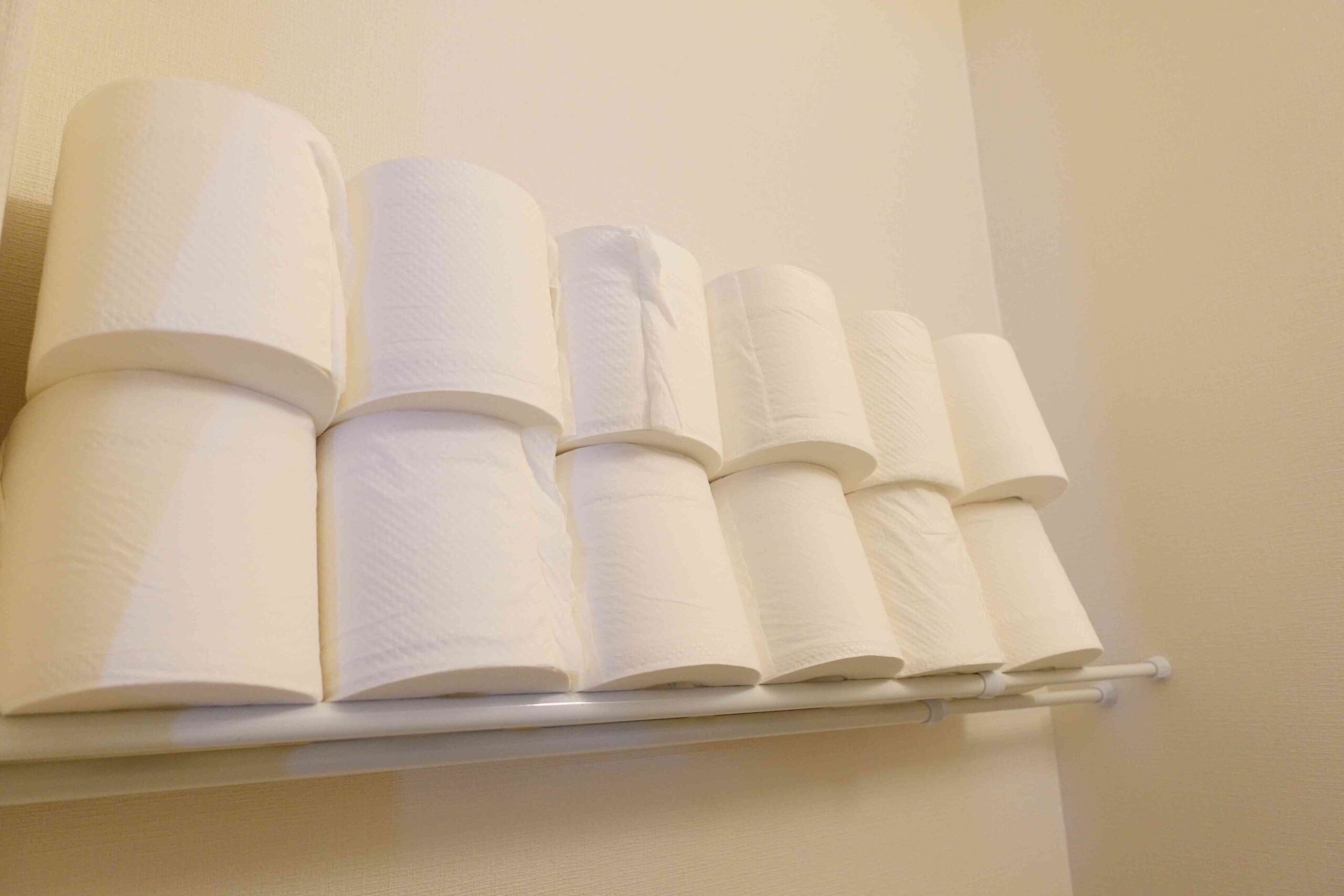 具体的な使い方で言うと、トイレにつっぱり棒を備えつけて棚を作ってトイレットペーパー置きにしたり、脱衣所や洗面所に備えつけて洗剤やシャンプー、コンディショナー、トリートメントなどの予備を収納できます。