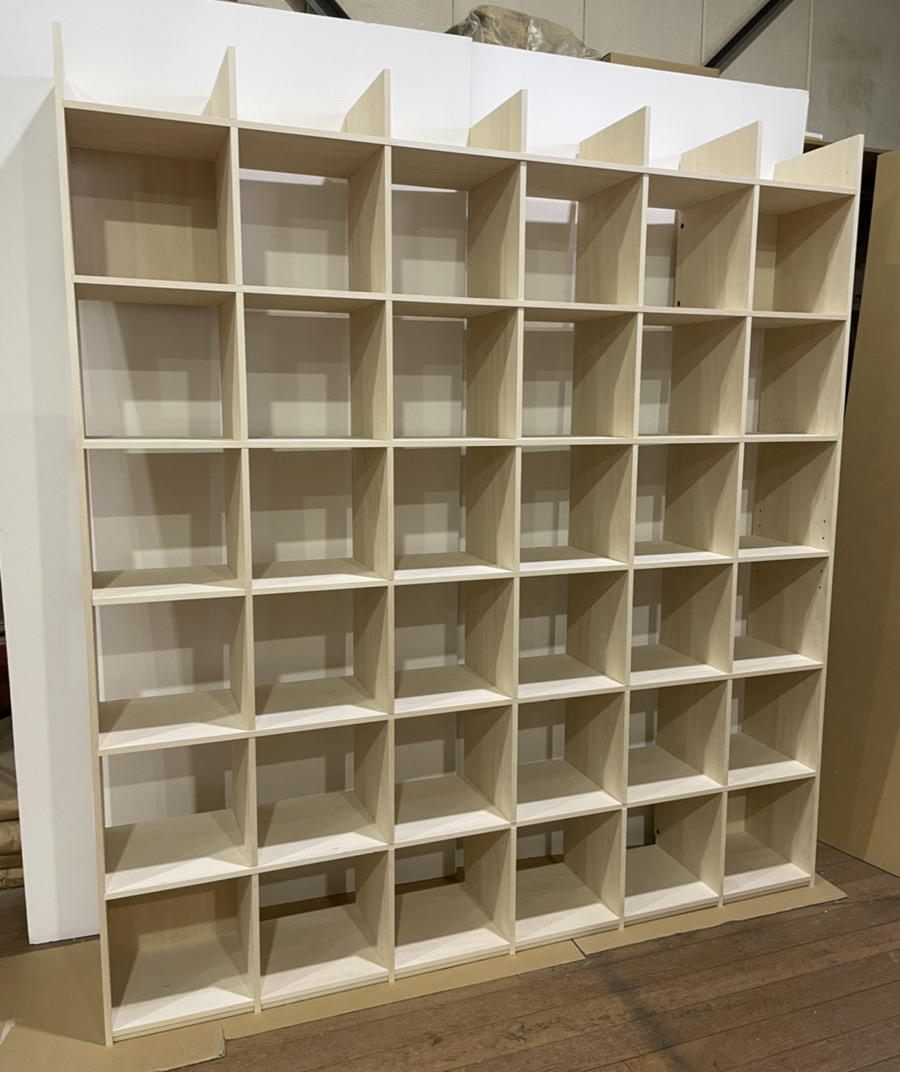 コマ1つの大きさは、325mm×325mm。A4タテ(297mm)の本や書類がゆとりを持って入ります。