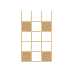 正方形のコマの数で高さ・横幅を自由に決められるハイ収納。