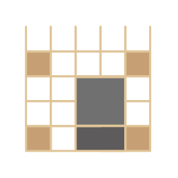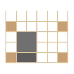 正方形のコマの数で高さ・横幅を自由に決められるハイ収納。