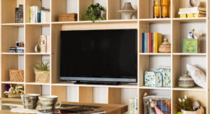 自分に合ったタイプのハイ収納な壁面収納を探すには、まずは「テレビ」「デスク」「本棚」「レコードラック」「食器棚」の