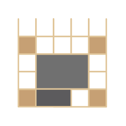 正方形のコマの数で高さ・横幅を自由に決められるハイ収納。