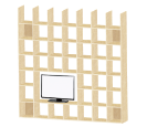 このキューブ型のコマが並んだ一体型の壁面収納OSAMARUに、テレビ開口部がついた壁面収納OSAMARUのハイタイプをご紹介します。