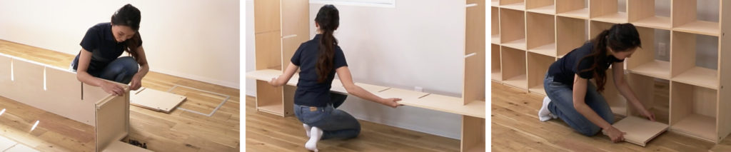 壁面収納OSAMARUの収納家具は、木材のパーツごとコンパクトに梱包されてご自宅に届けられます。