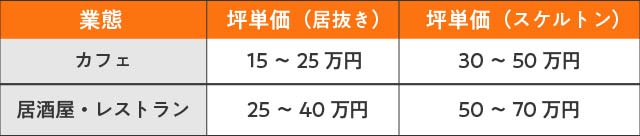 スケルトン物件と居抜き物件では、必要な作業量がまったく違ううえ、業態によっても設備にかかる費用が変わるのです。