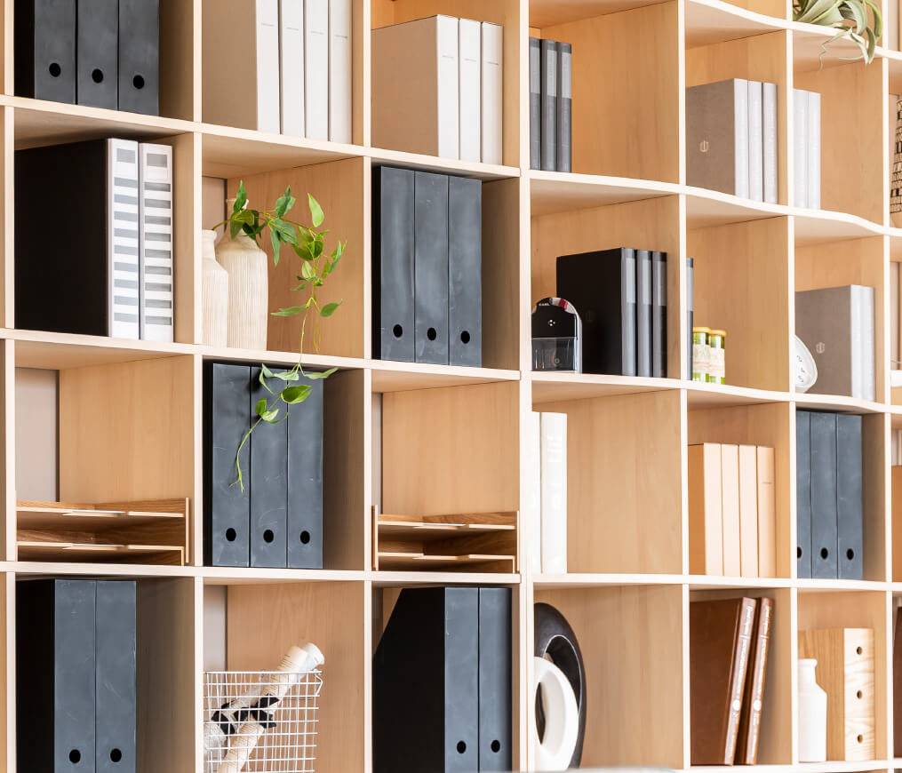 家族構成や背丈、蔵書の冊数に併せて好きな大きさの「家族の図書館」はもちろん「大容量の見せる収納」を作ることができます。