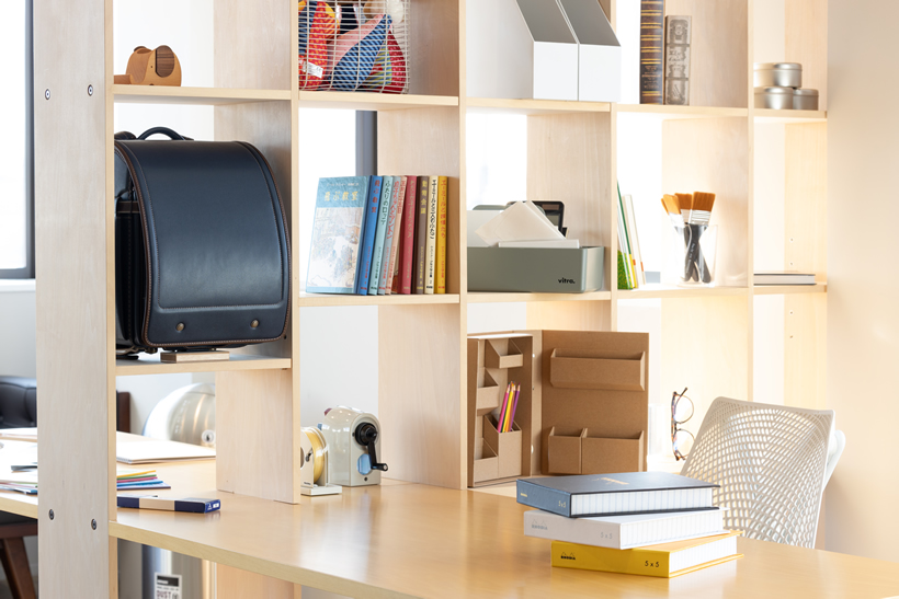 最小で2コマからはじめられるので、まずは必要と感じる分を設え、家族の状況に合わせて壁面いっぱいまで、必要な時に必要な分だけ増やしていくことができます。