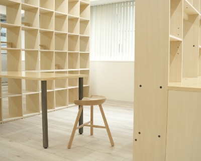 マンションの一室を事務所にしたり、オフィスビルの限られたスペースでお仕事をする個人事務所の場合は、いかにご自身の作業が効率的に行えるか、が大切になります。 OSAMARUのデスク付きの壁面収納をひとつ置くだけで、資料も優先度順に片付けることができ、デスクに座りながら手を伸ばせばすぐに手が届く、理想的な作業環境になります。