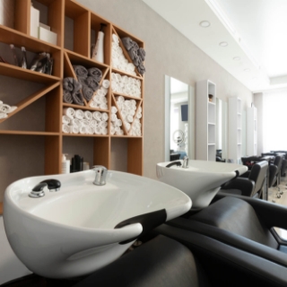 ローボードをセット用椅子の対面の壁に沿わせて、その上に木枠つきの鏡を配置。観葉植物やアロマディフューザーなどを飾りれば素敵な「スタイリング台」に。 中段には化粧品やシャンプー類などを展示、収納することもできます。勿論、待合室やレジ、バックヤードにも最適です。