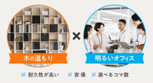 整体院の施術室や待合室は面積が限られているので、なるべくベストサイズな本棚を選びたいですよね。 たくさんのコマ数の中から、セミオーダーのようにお選びいただき、高さカットなどのオプションを使用すれば、スペースにぴったりな棚に。 また、木のぬくもりが、整体院・接骨院を通いやすい落ち着いた雰囲気にまとめられるでしょう。