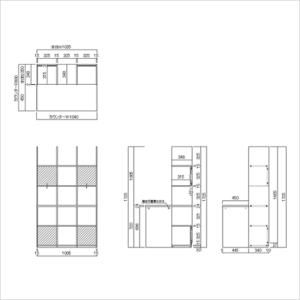 | 付属品 | 六角レンチ・側板ジョイント金物(JCB)GB・カウンター連結金具・木ダボ・ダボ棚受・転倒防止用金具 |