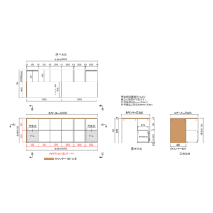 | 付属品 | 六角レンチ・側板ジョイント金物(JCB)GB・カウンター連結金具・木ダボ・ダボ棚受・転倒防止用金具 |
