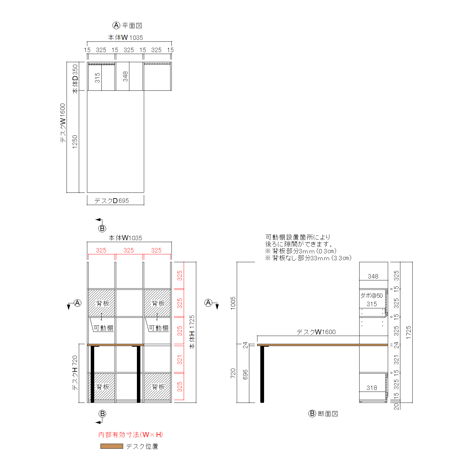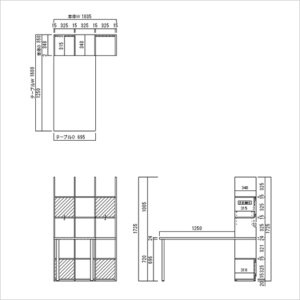 本体:W1035×H1725×D350 テーブル:W1600×D695×T24 |