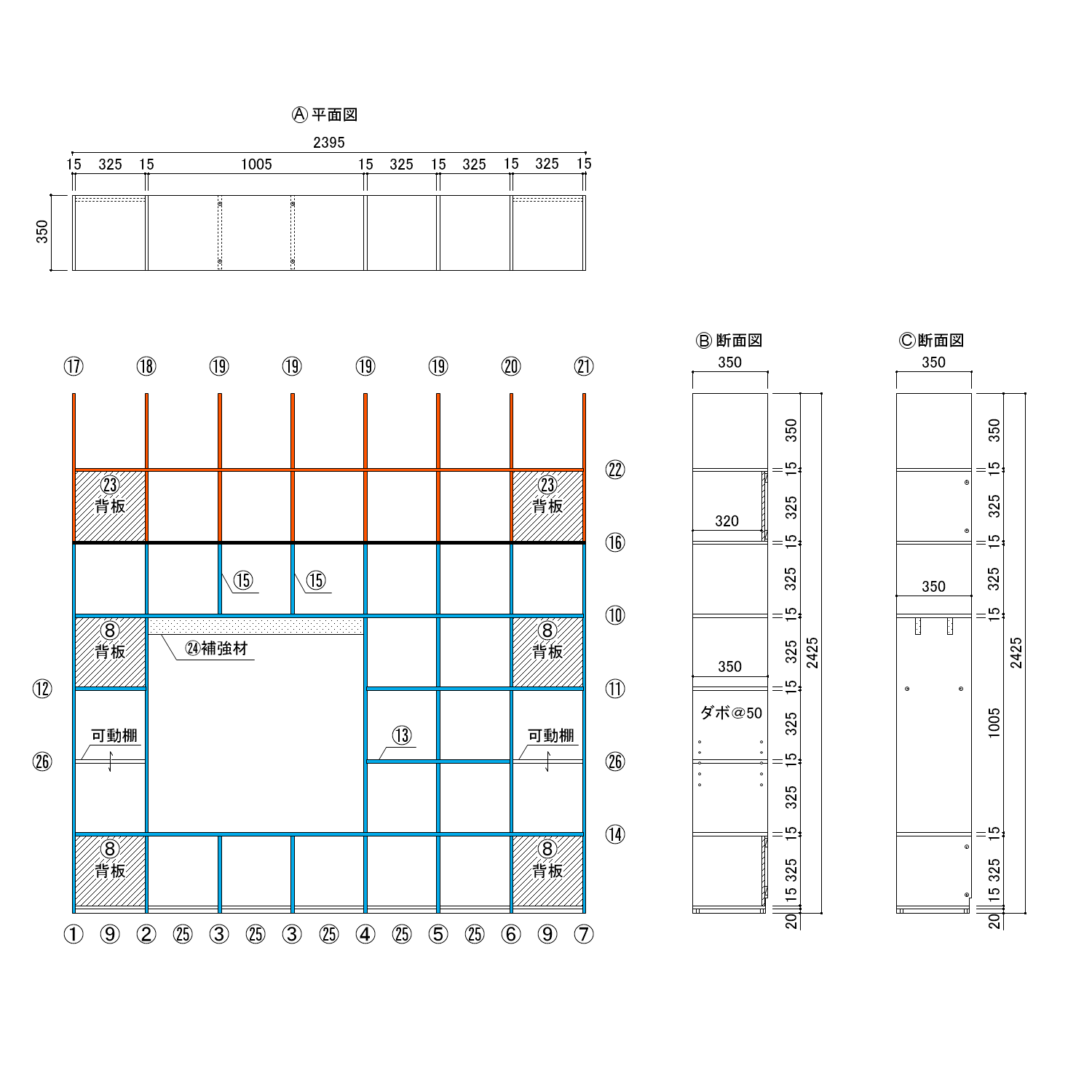 > タテ7×ヨコ7×D350 左から2開口3×3