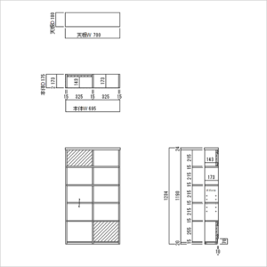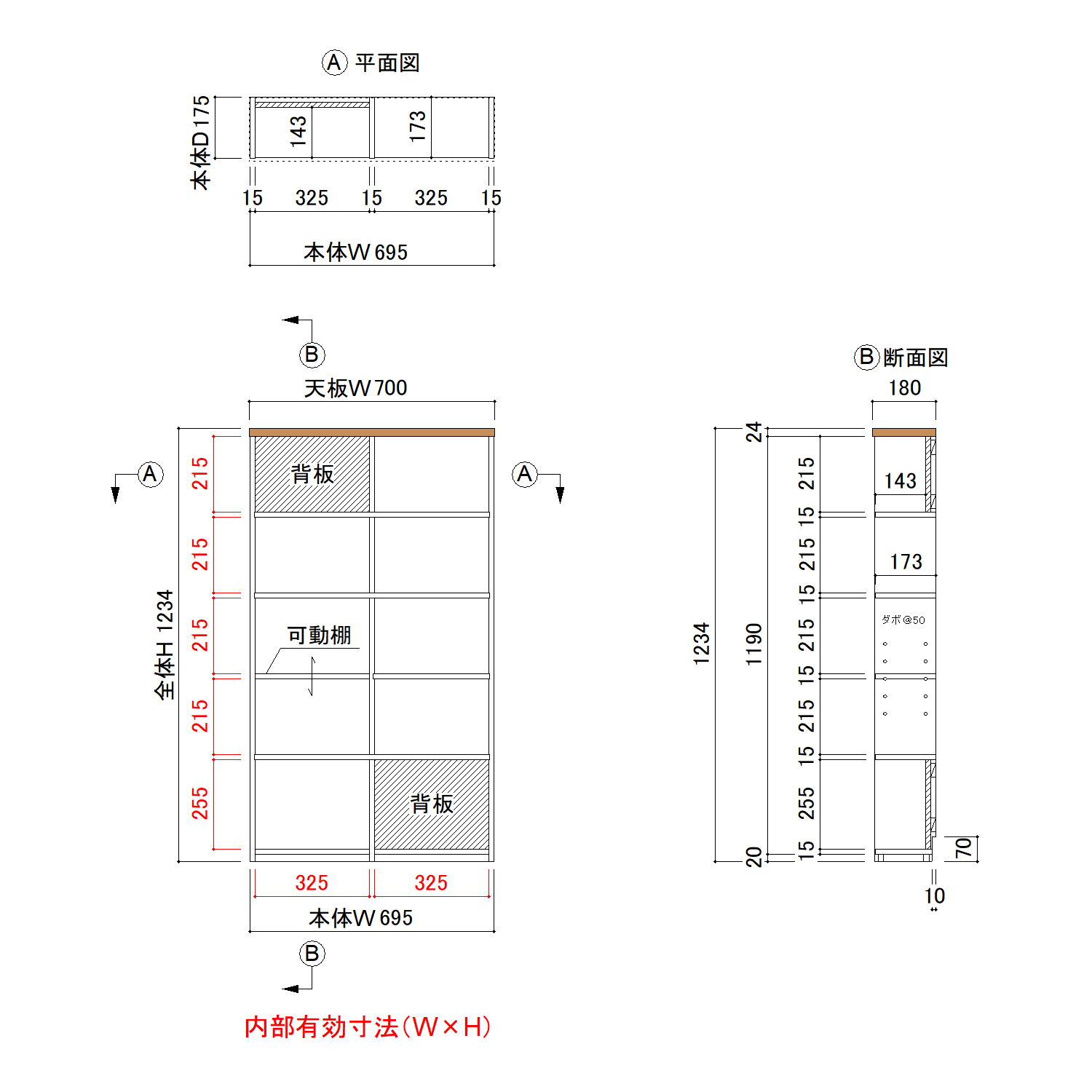 本体:W695×H1210×D175 天板:W700×D180×T24 |