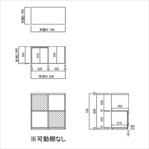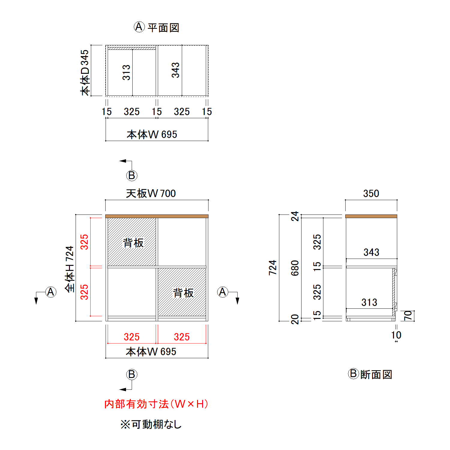 本体:W695×H700×D345 天板:W700×D350×T24 |