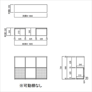 背板部分:D313 地板:D233 ※可動棚なし |