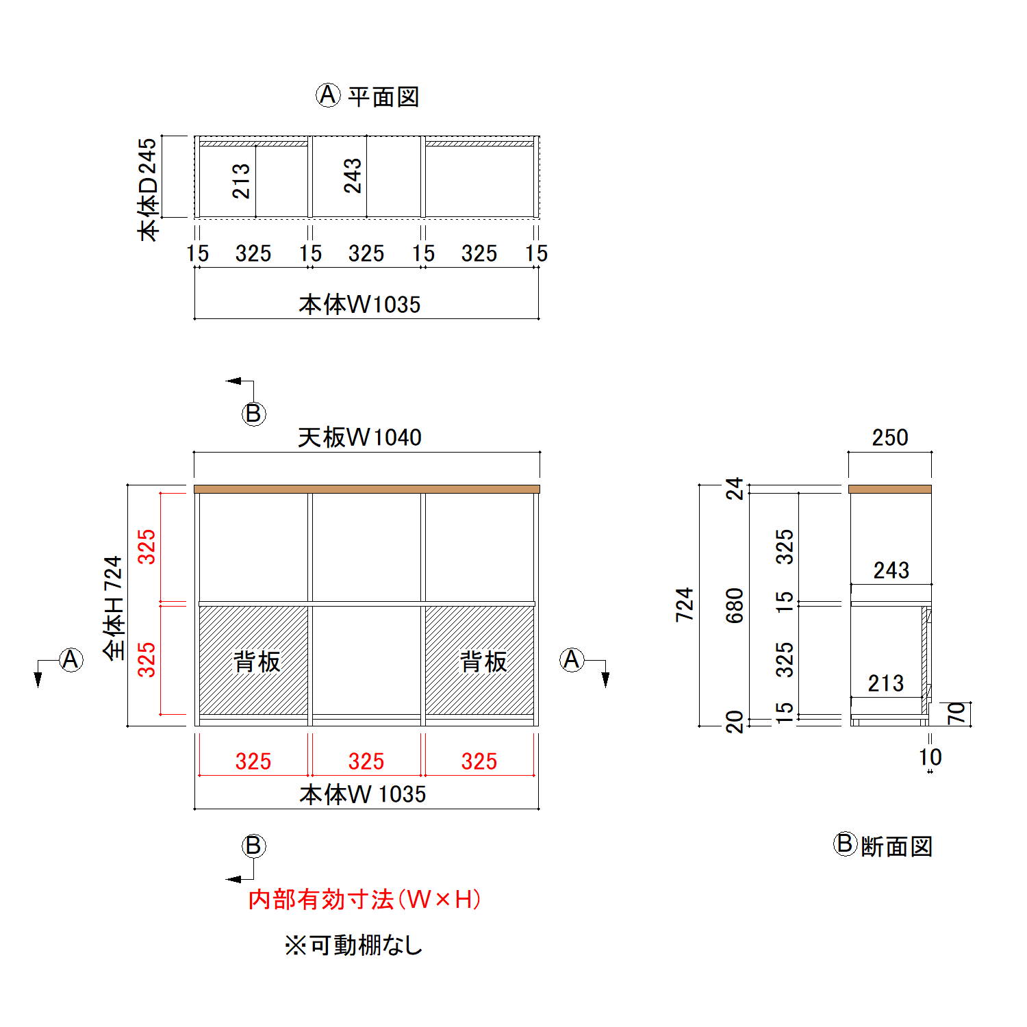 本体:W1035×H700×D245 天板:W1040×D250×T24 |