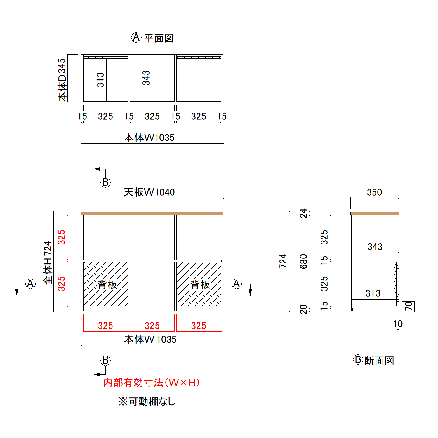 本体:W1035×H700×D345 天板:W1040×D350×T24 |