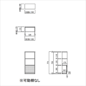 | 開口有効寸法 | 縦・横1マス:W325×H215×D173(下から1段目:H255)