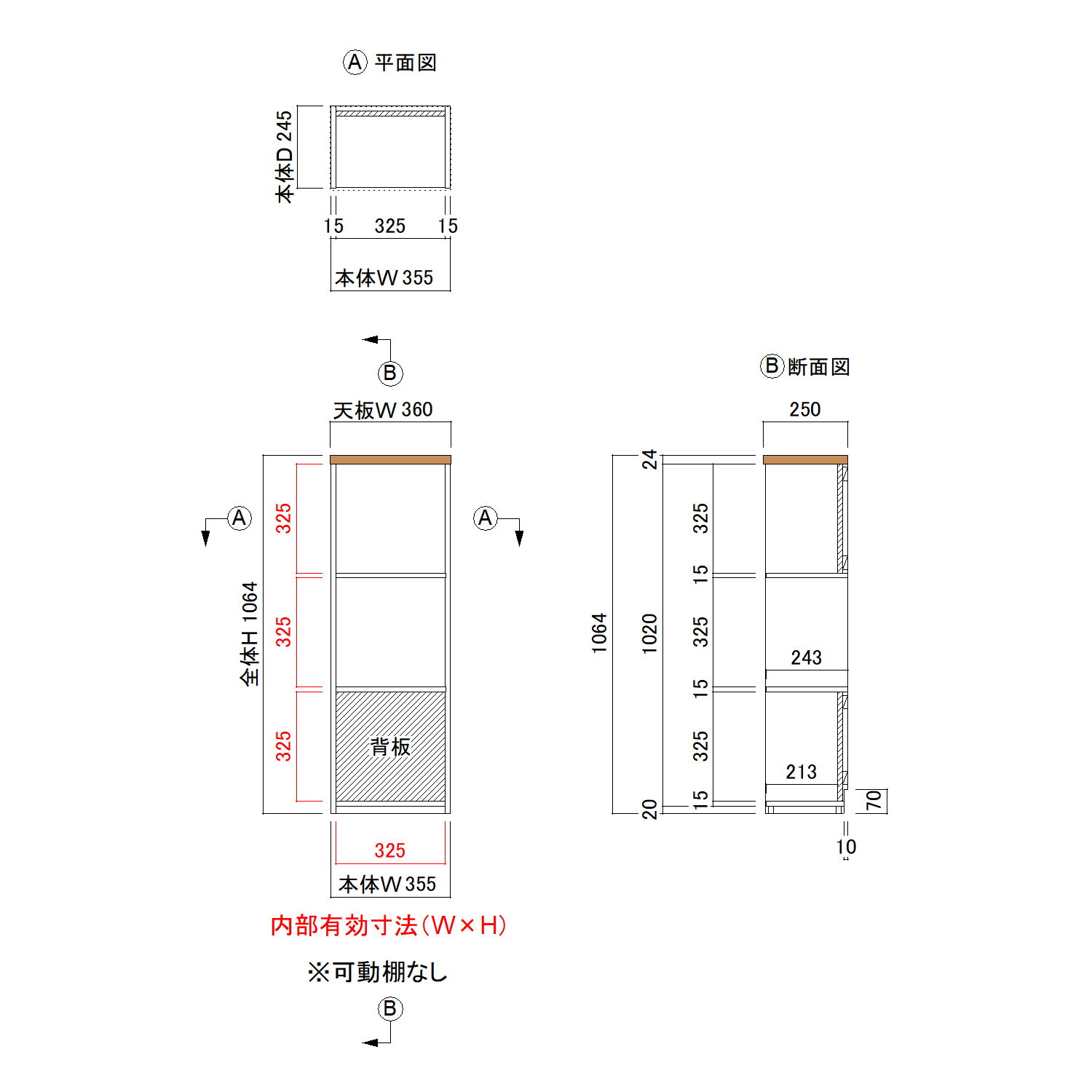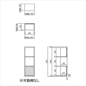 背板部分:D213 地板:D233 ※可動棚なし |
