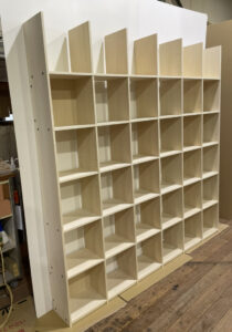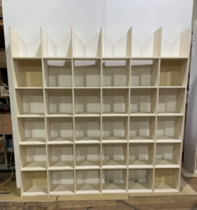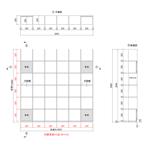 縦・横1マス:W325×H325×D250 背板部分:D220 可動棚:D248 地板:D240 |