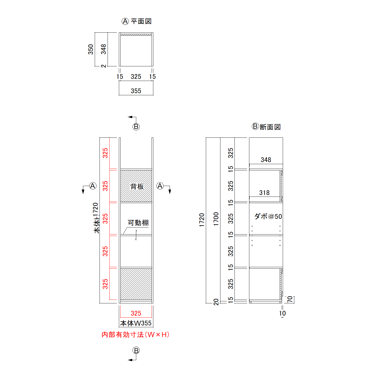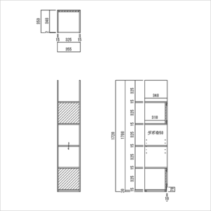 | 開口有効寸法 | 縦・横1マス:W325×H325×D348