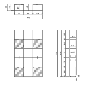 | 開口有効寸法(mm) | 縦・横1マス:W325×H325×D248