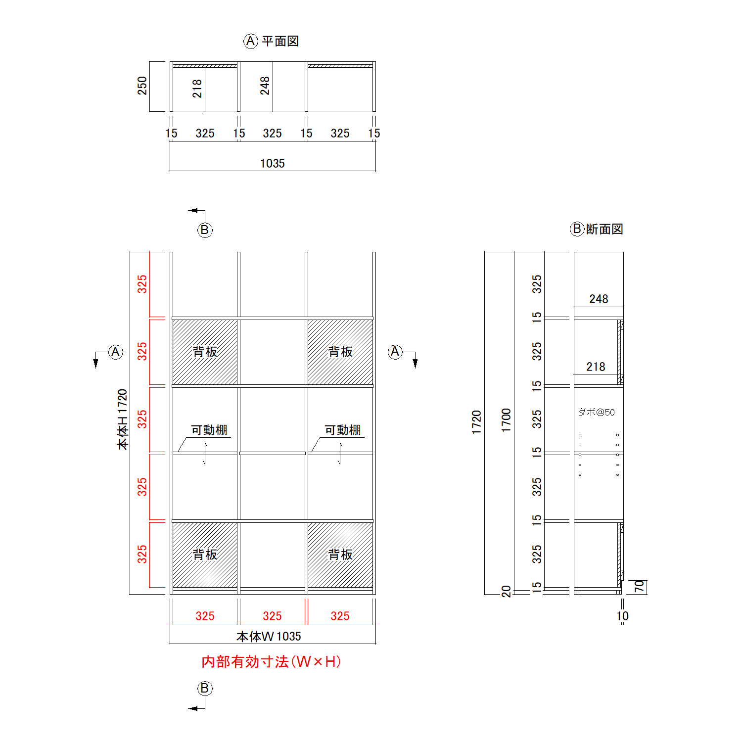 背板部分:D218 可動棚:D248 地板:D238 |