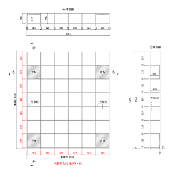 | 開口有効寸法 | 縦・横1マス:W325×H325×D248