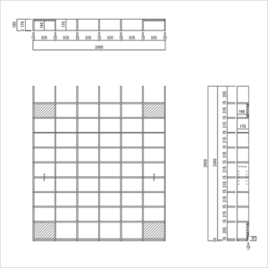 コマ1つの大きさは、215mm×325mmです。(下から1・10段目のみ高さ255mm)キッチンや洗面台の隙間にも設置できる薄型収納です。