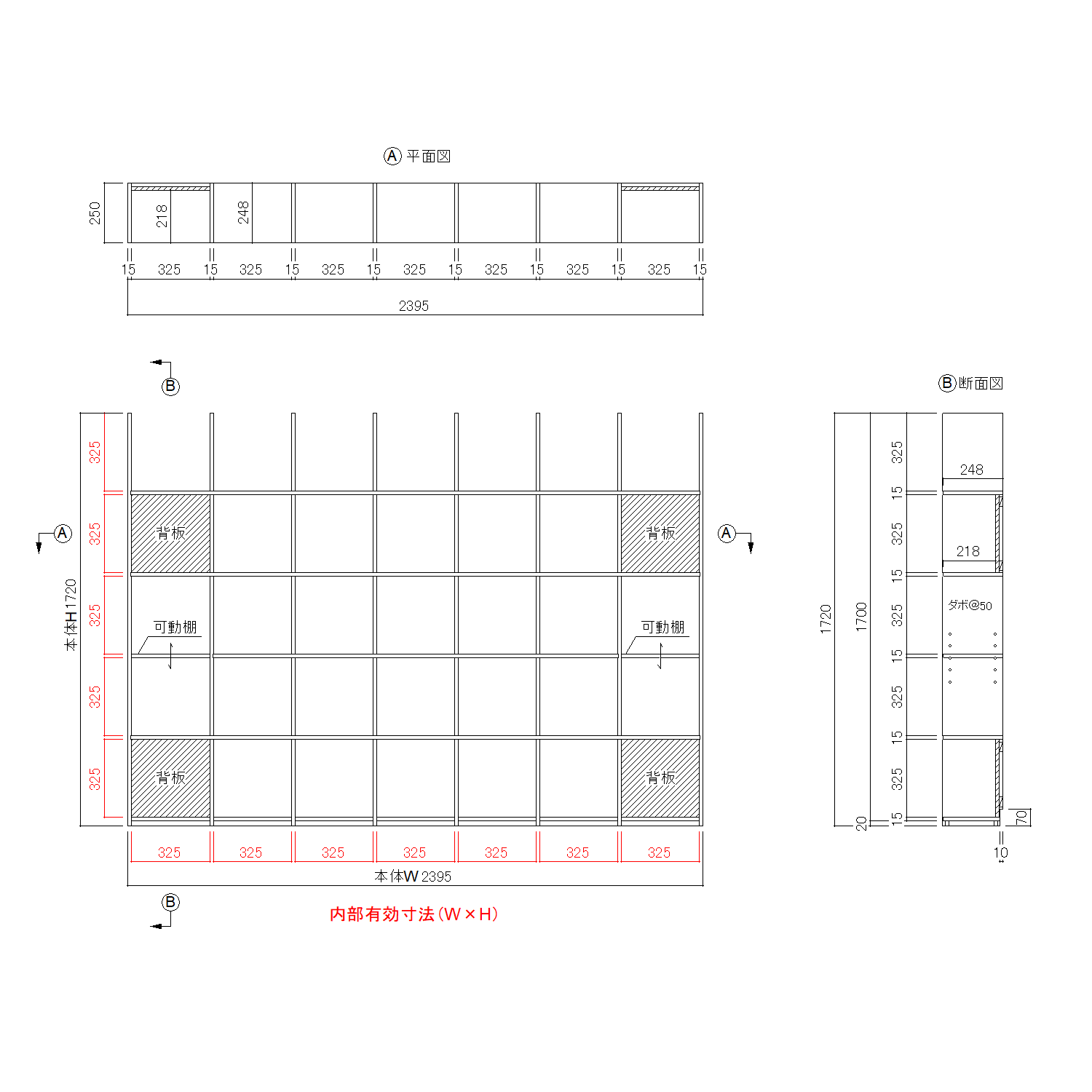 背板部分:D218 可動棚:D248 地板:D238 |