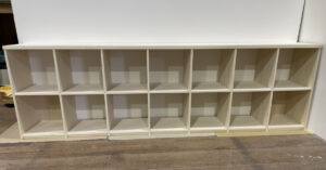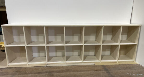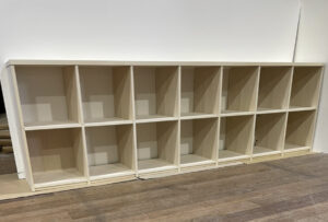 奥行き350mmの高さの低い壁面収納本棚です。机の横や廊下、クローゼットの中などに適しています。小スペースも無駄なく活用でき、色んな場所に置くことが出来ます。