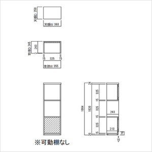 | 開口有効寸法 | 縦・横1マス:W325×H325×D243