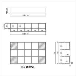 背板部分:D213 地板:D233 ※可動棚なし |