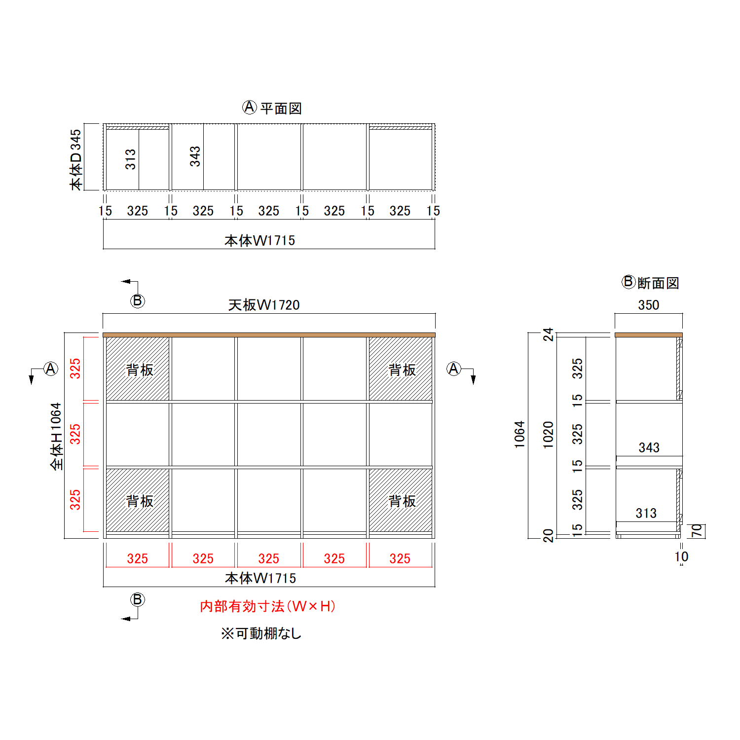 本体:W1715×H1040×D345 天板:W1720×D350×T24 |