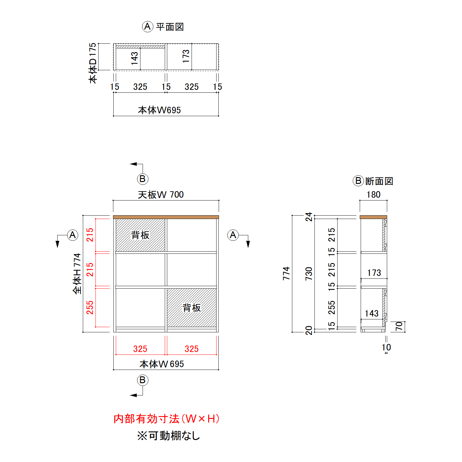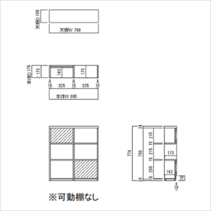 | 開口有効寸法 | 縦・横1マス:W325×H215×D173(下から1段目:H255)