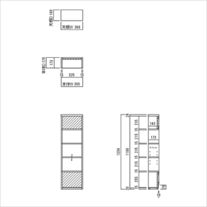 | 開口有効寸法 | 縦・横1マス:W325×H215×D173(下から1段目:H255)