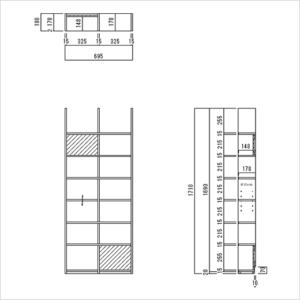 開口有効寸法 縦・横1マス:W325×H215×D178(下から1・7段目:H255)