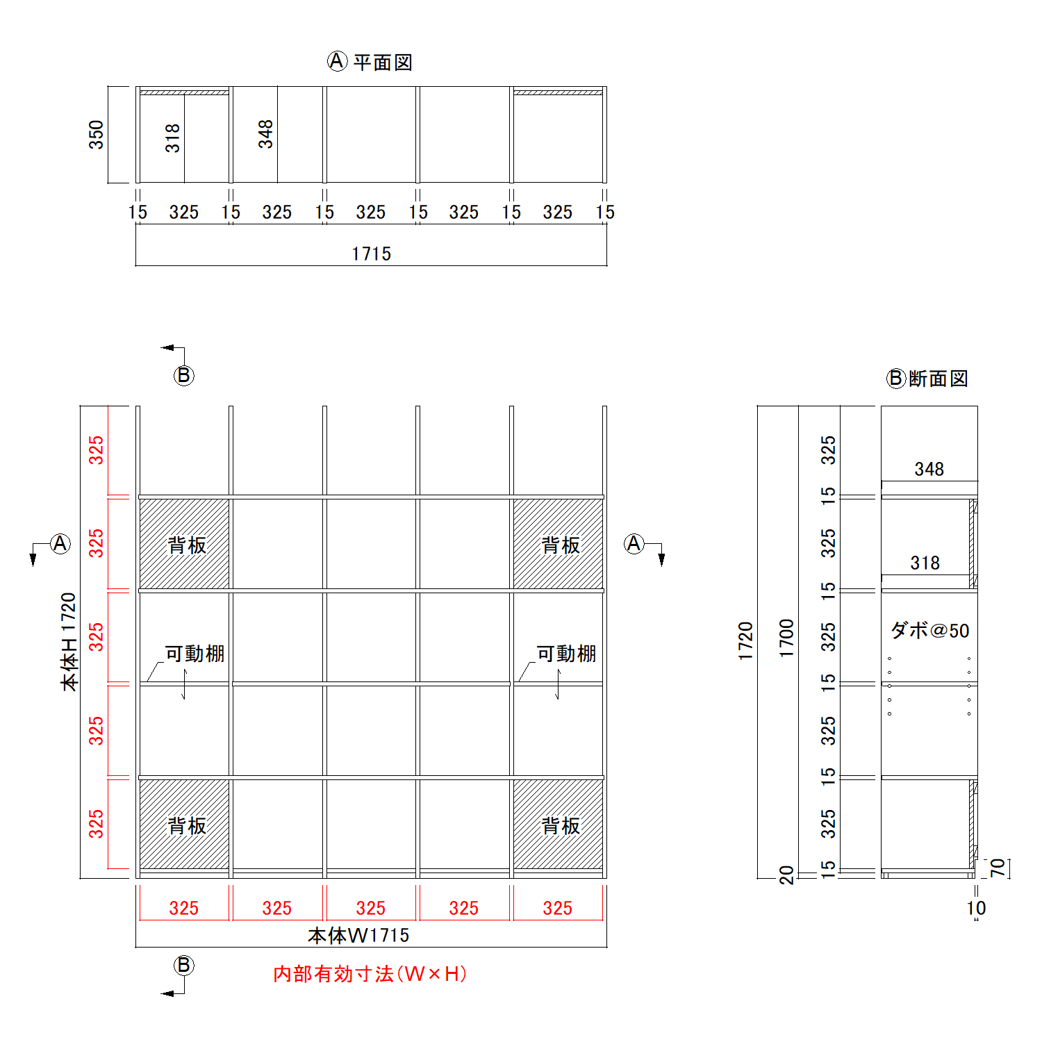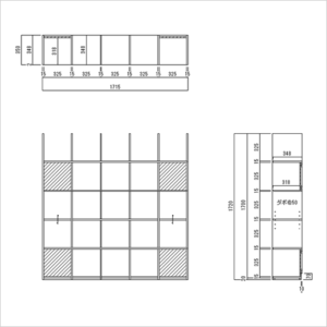 | 開口有効寸法 | 縦・横1マス:W325×H325×D348