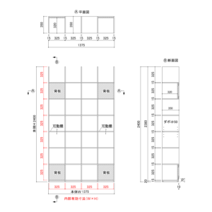 | 開口有効寸法 | 縦・横1マス:W325×H325×D348