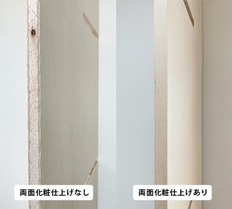 壁側にくる切断面にも化粧板を貼り、表裏両面とも美しく見えるように仕上げるオプションです。 OSAMARUをパーテーション代わりに使用するなど、両面とも人目に付く場合にオススメです。 料金:壁面収納OSAMARU1台につき本体価格+15% ※本加工を施しますと、巾木よけ加工をせずにお送りいたします。巾木よけ加工をご希望の方は、注文メモよりお知らせください。 ※見た目が綺麗になる以外の効果はありません。