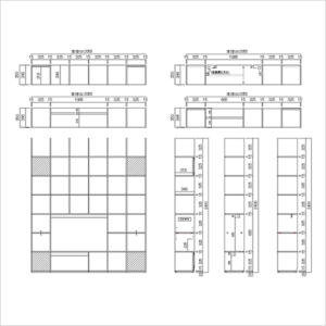 縦・横1マス:W325×H325×D348 縦1コマ×横コマ:W665×H325/265×D318/334 背板部分:D318 可動棚:D348 地板:D334 |