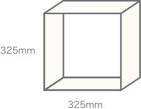標準的な壁面収納OSAMARUの1コマは、縦32.5cm×横32.5cmの正方形で、奥行きは35cmが最大サイズです。