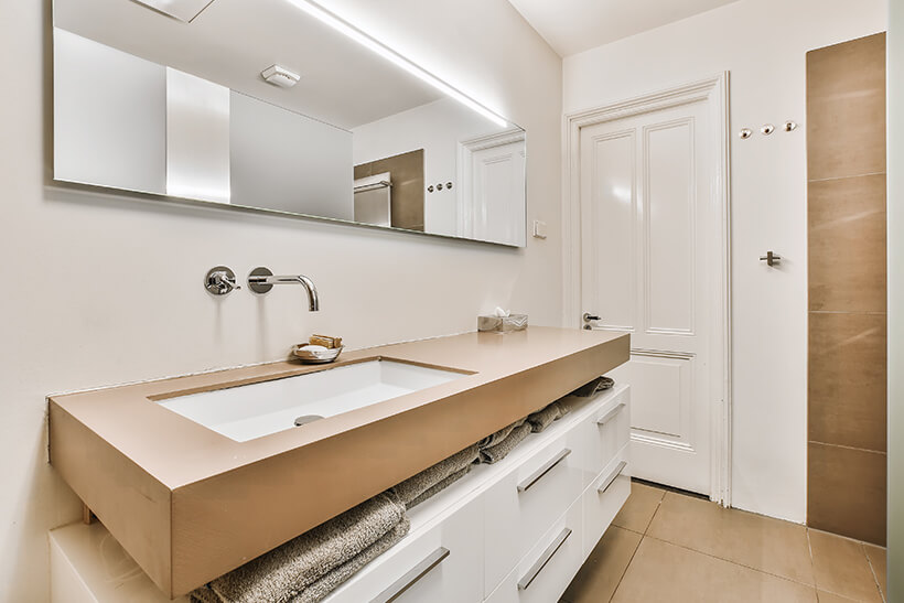自分の部屋に洗面台を設置する際には、洗面台を設置する幅(間口)を確認することが重要です。ユニットタイプだと、60cm、75cm、90cmのサイズがあります。自分の部屋の間口より小さいサイズの洗面台を選びましょう。