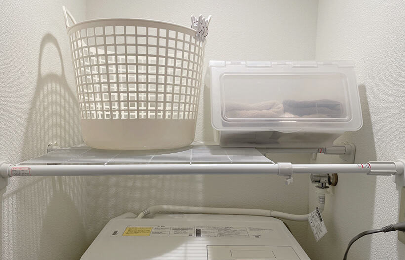 まずは、洗濯機上の収納スペースを増設することから始めてみましょう。